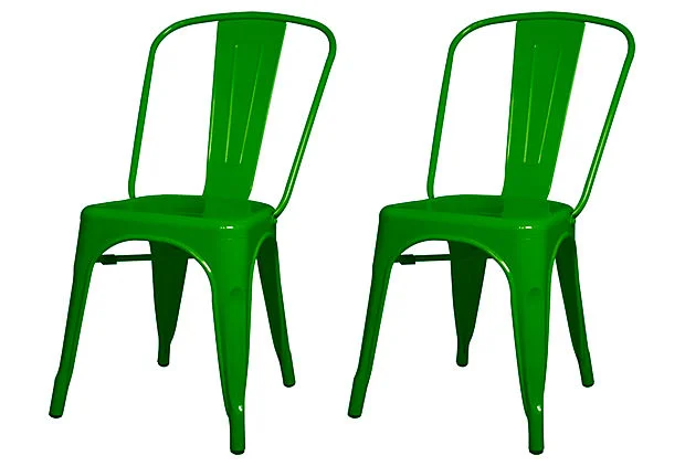 Today's deal of the day is a bit of industrial chic in the form of the Tolix Chair -- these French made chairs have been a class act in bistros since the 1930s. You can catch them on One King's Lane for $300 in an array of jaunty colors -- you know how much I love Kelly Green! But if you do a google search, you'll see that it's easy enough to pick up a set of four for even less: InStyle Modern and Overstock, for example . Eat your heart out, and enjoy the images below of tolix's caught in the act.